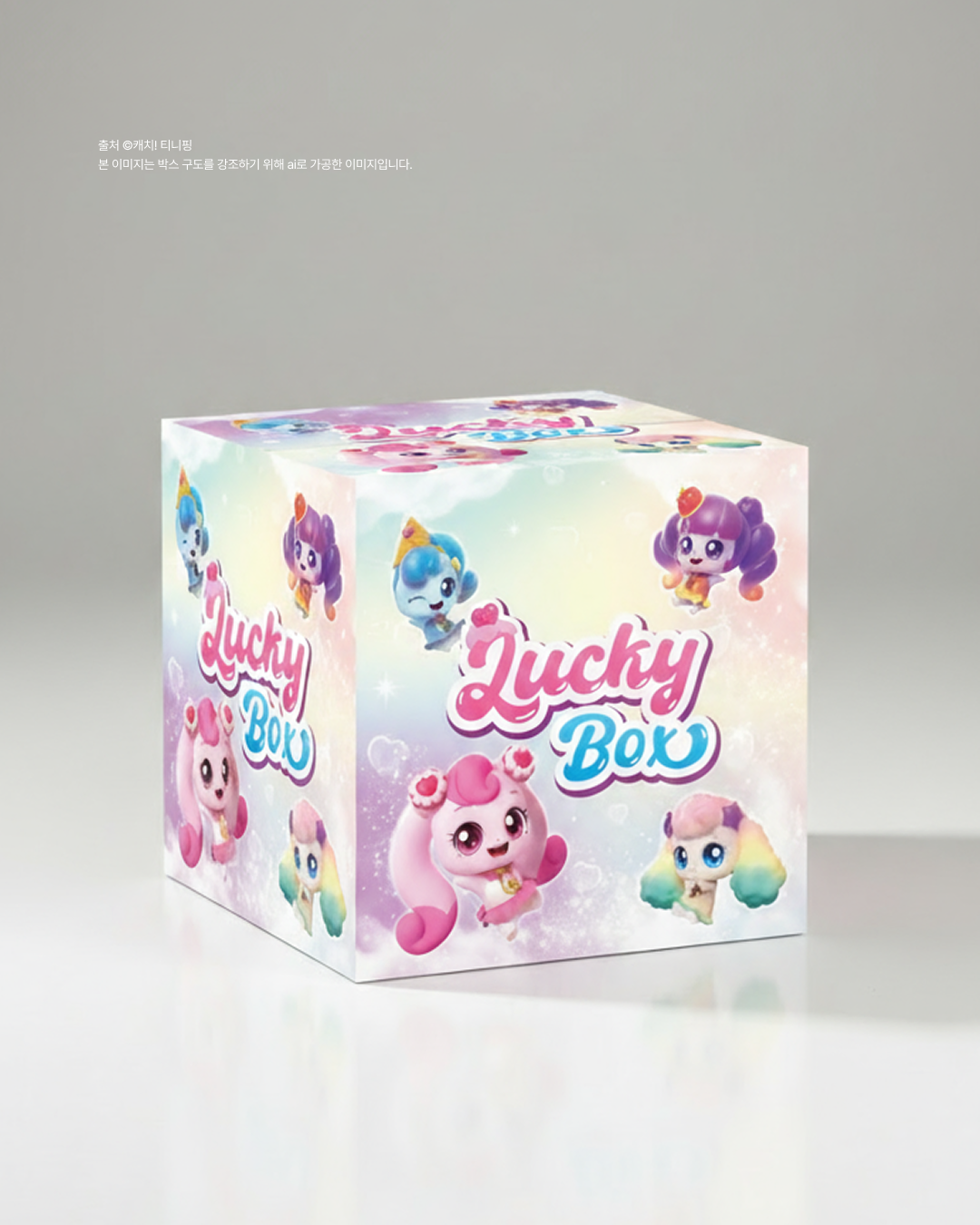 매년 5월 티니핑 어린이날 행사 부스에 어김없이 등장하는 캐치!티니핑 럭키박스! 티니핑은 매년 새로운 럭키박스 패키징 디자인을 선보이며, 구성품의 가격대에 따라 베이직 박스와 프리미엄 박스로 티어를 구분하는 등 고르는 재미까지 더했습니다. 행운의 티니핑을 얻기 위해 두근거리며 박스를 안아 들 어린이들을 위해, 티니핑 럭키박스는 안전성과 내구성을 모두 고려한 골판지 단상자로 제작되었습니다.