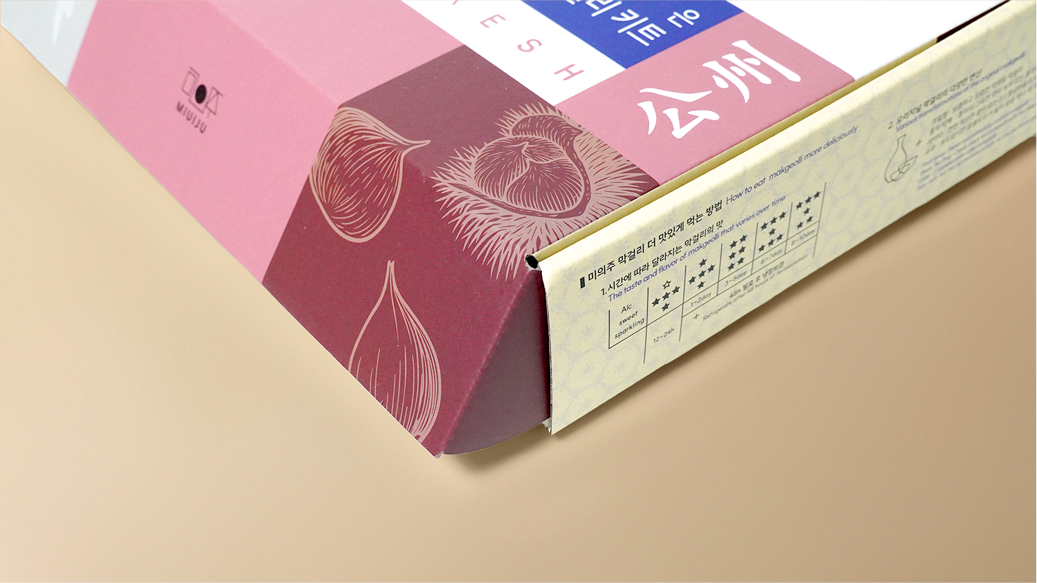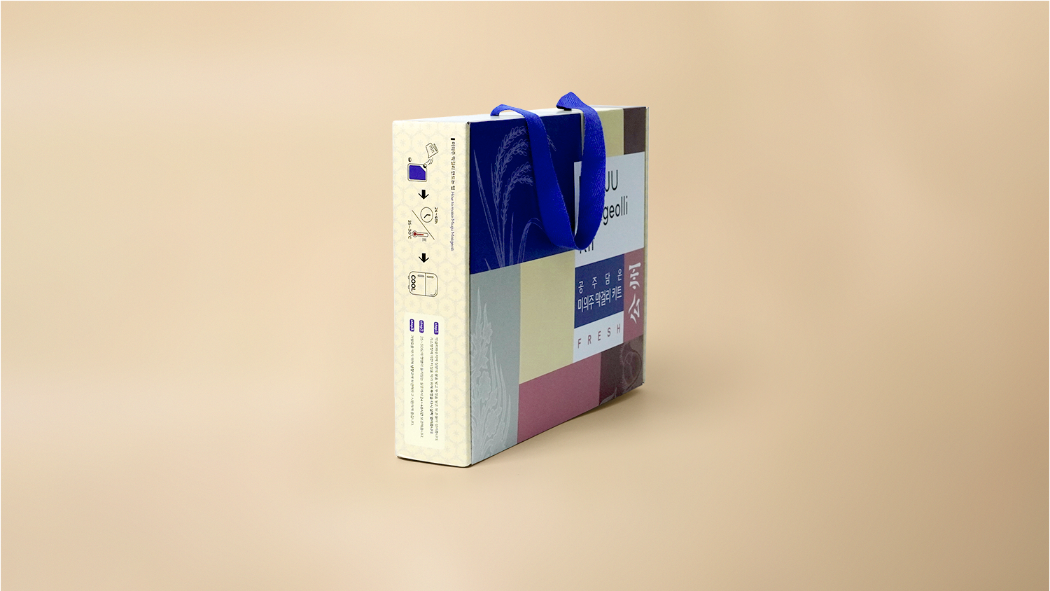 오늘은 고마스토리주식회사와 함게 제작한 미의주 막걸리 밀키트 패키지를 소개해드리려고 합니다. 조립형 G형 박스에 면끈 손잡이를 더해 휴대성과 선물용 감성을 동시에 잡은 패키지인데요, 팬톤 컬러 인쇄 팁부터 맞춤 제작으로 면끈 디테일을 구현하는 법까지 함께 살펴보겠습니다.