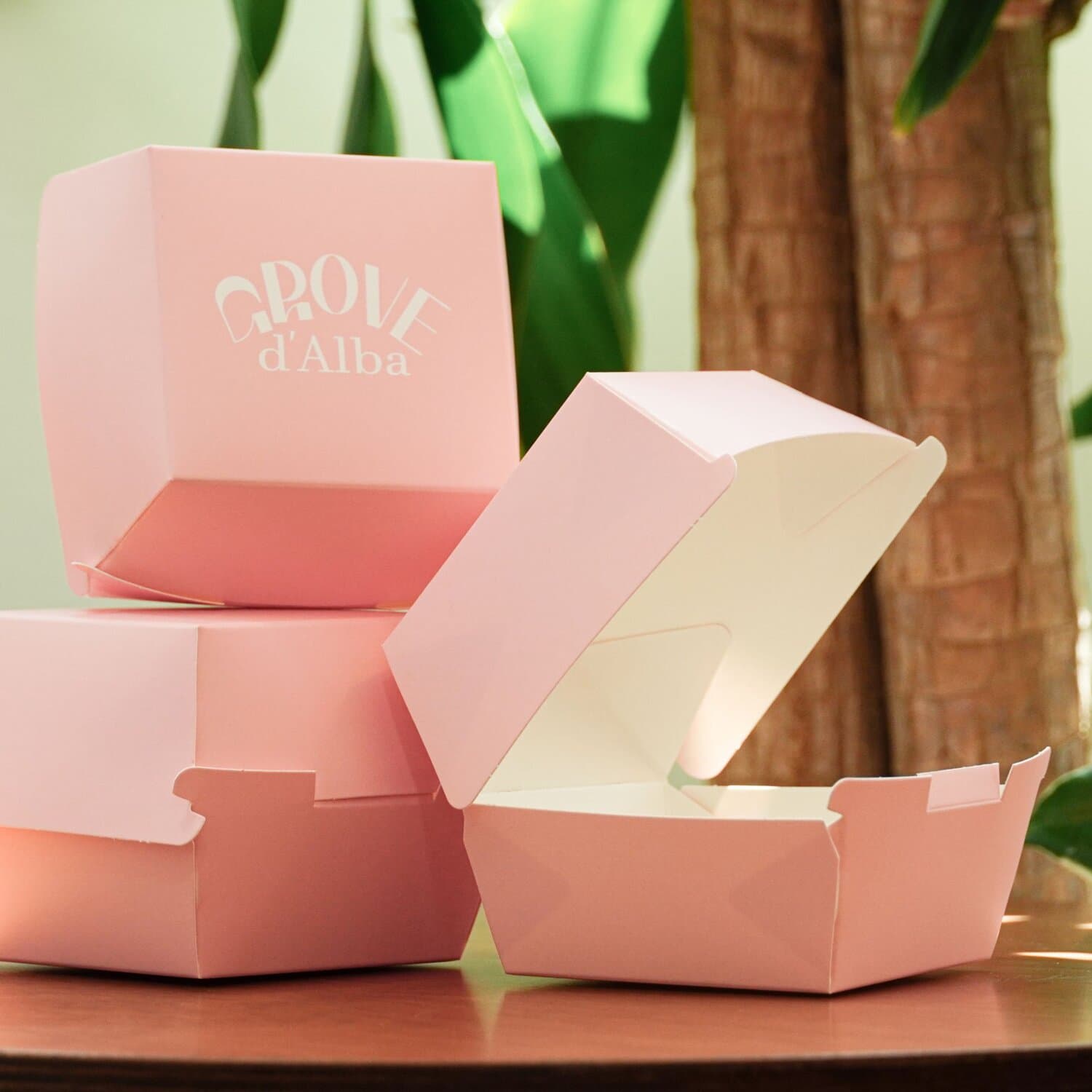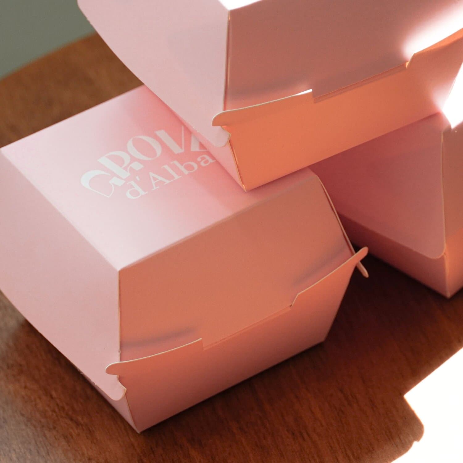 We created a burger box for d'Alba, a premium vegan beauty brand, for their pre-campaign "Glow & Tone-up with d'Alba". The name "burger box" makes you think that it can only hold burgers, but it's actually a cute package that can be used for small desserts like muffins or mini cakes, or even socks or toys to make a different impression.