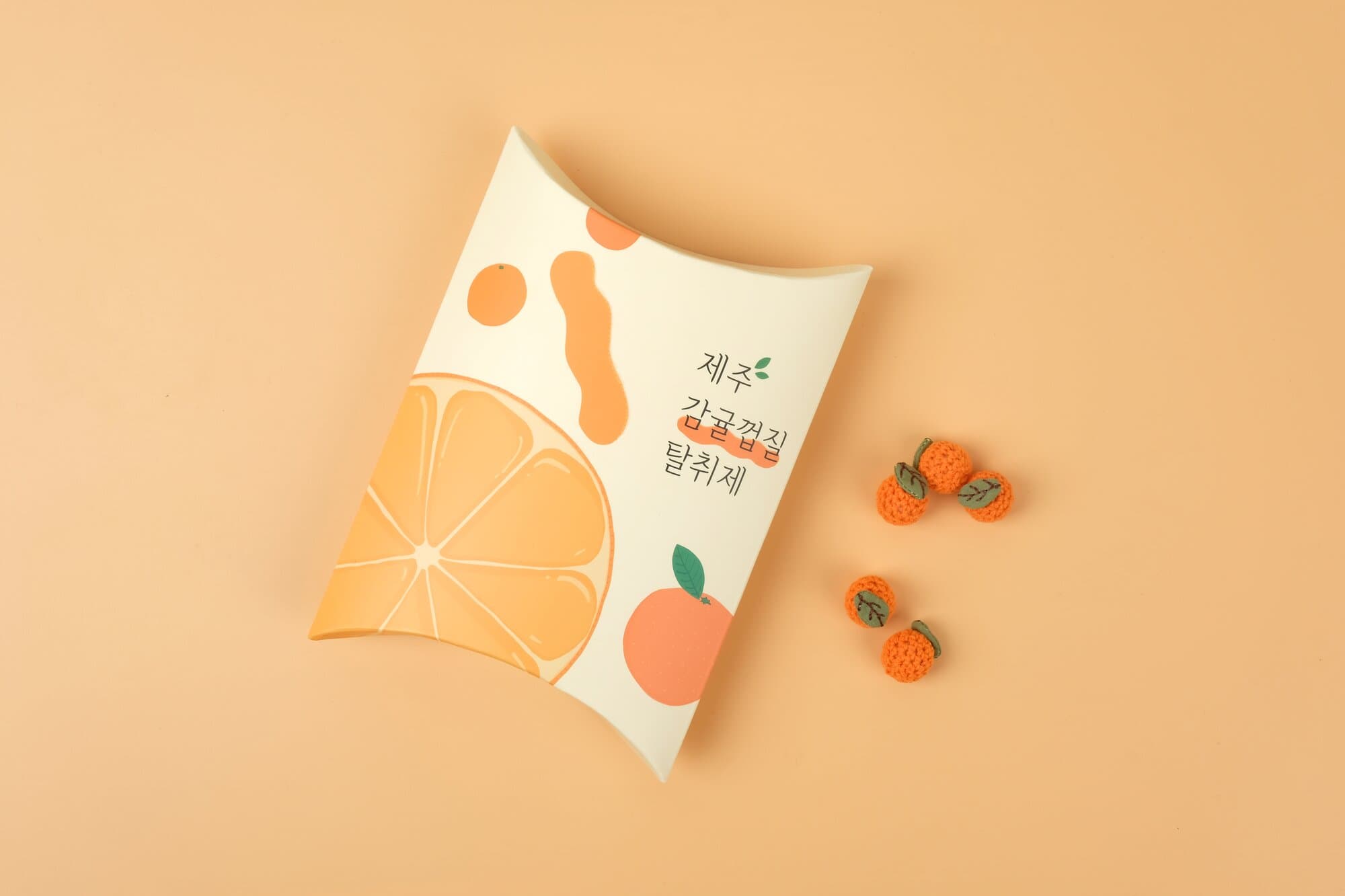 The color orange reflects the freshness of Jejuโs citrus to match the brandโs image.