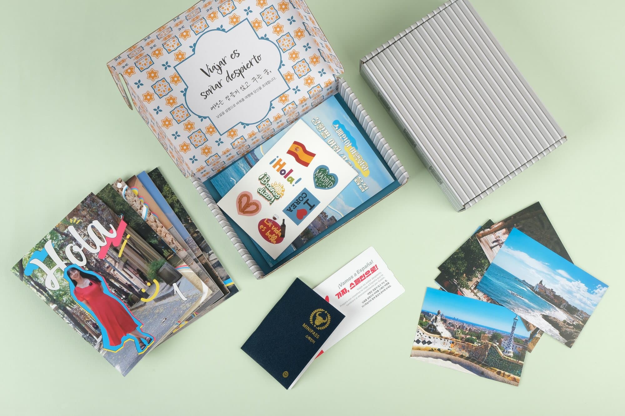 총 6권의 교재와 스티커, 엽서, 미니 여권까지 모두 안전하게 배송할 수 있는 패키지로 신경 써서 제작했어요.
