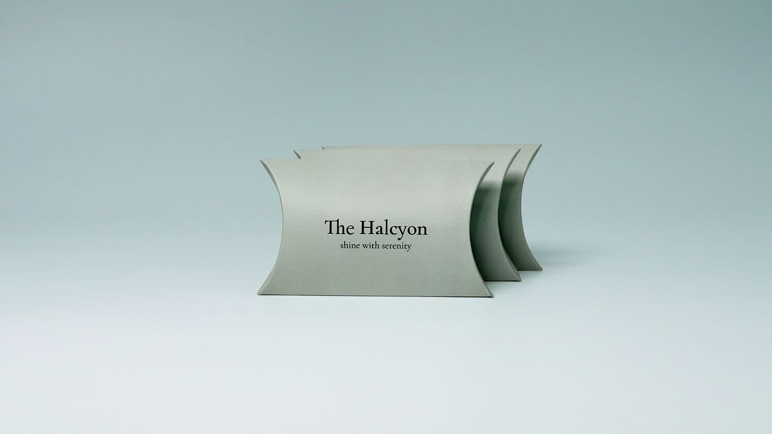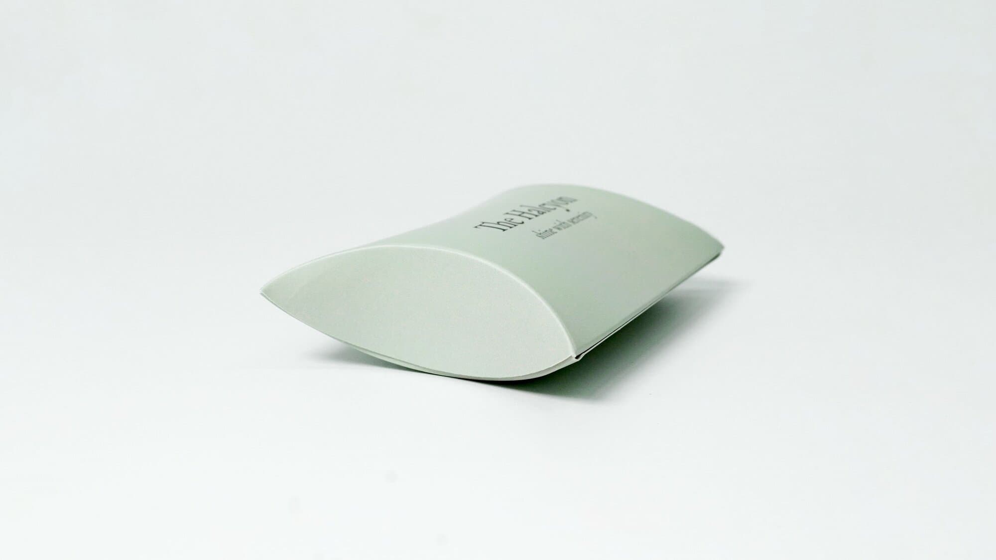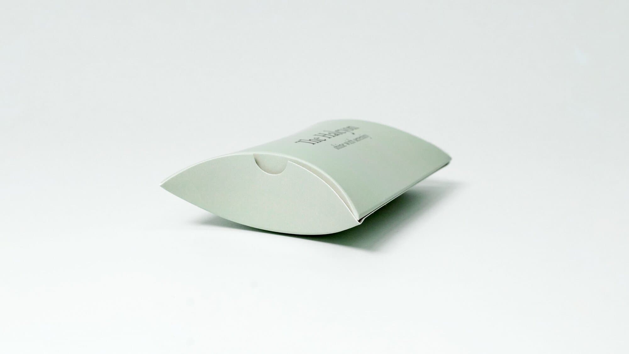 더할시온은 착용하는 이가 평온함을 담아 빛나기를 바라는 마음을 담은 주얼리 브랜드입니다. 패키지 제작에 사용된 반달상자는 베개를 닮아 영어로는 pillow box라고도 불리는데요, 연녹색 바탕에 무광코팅을 하여 차분하고 편안한 느낌을 주는 것이 특징입니다.