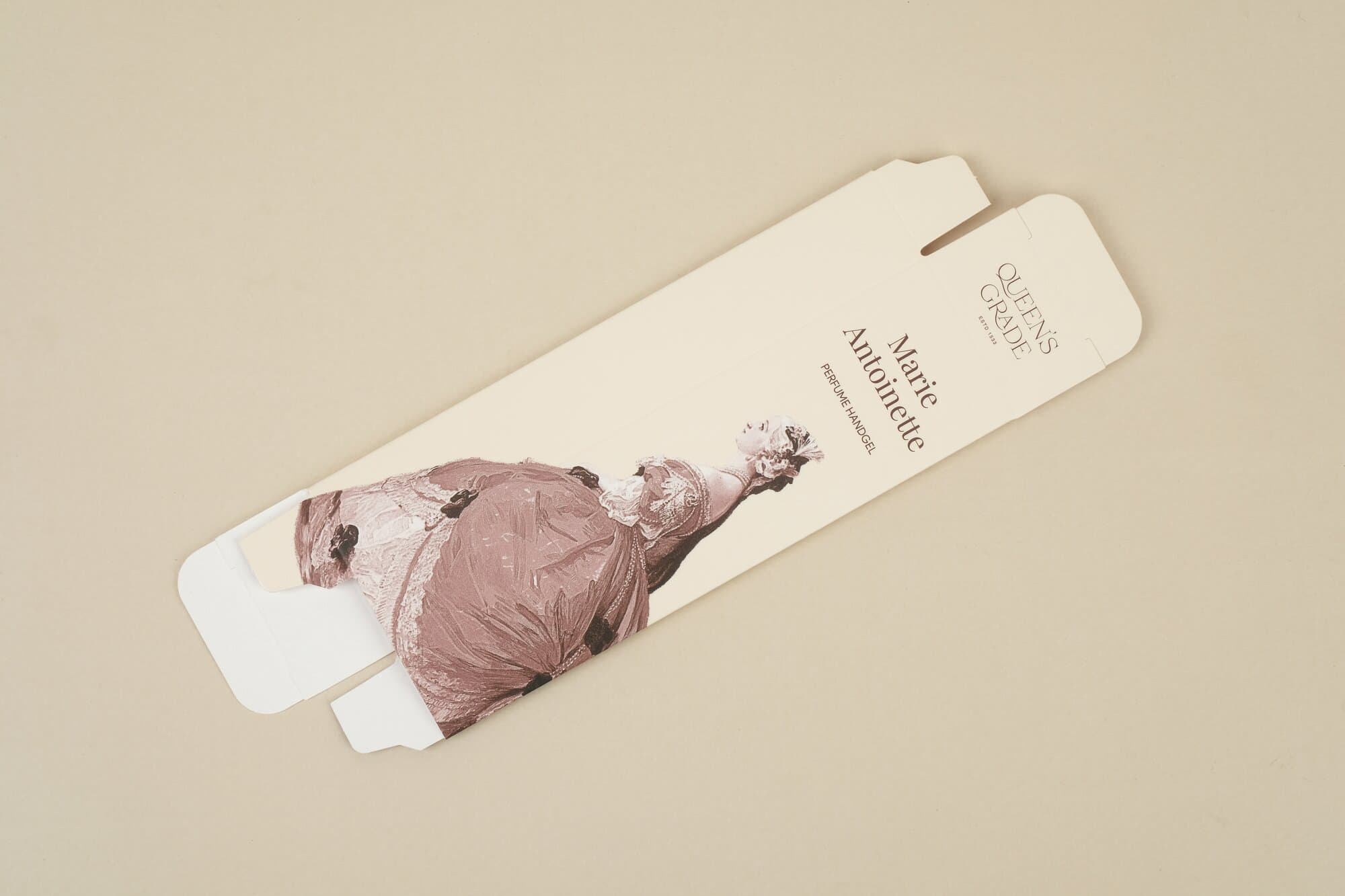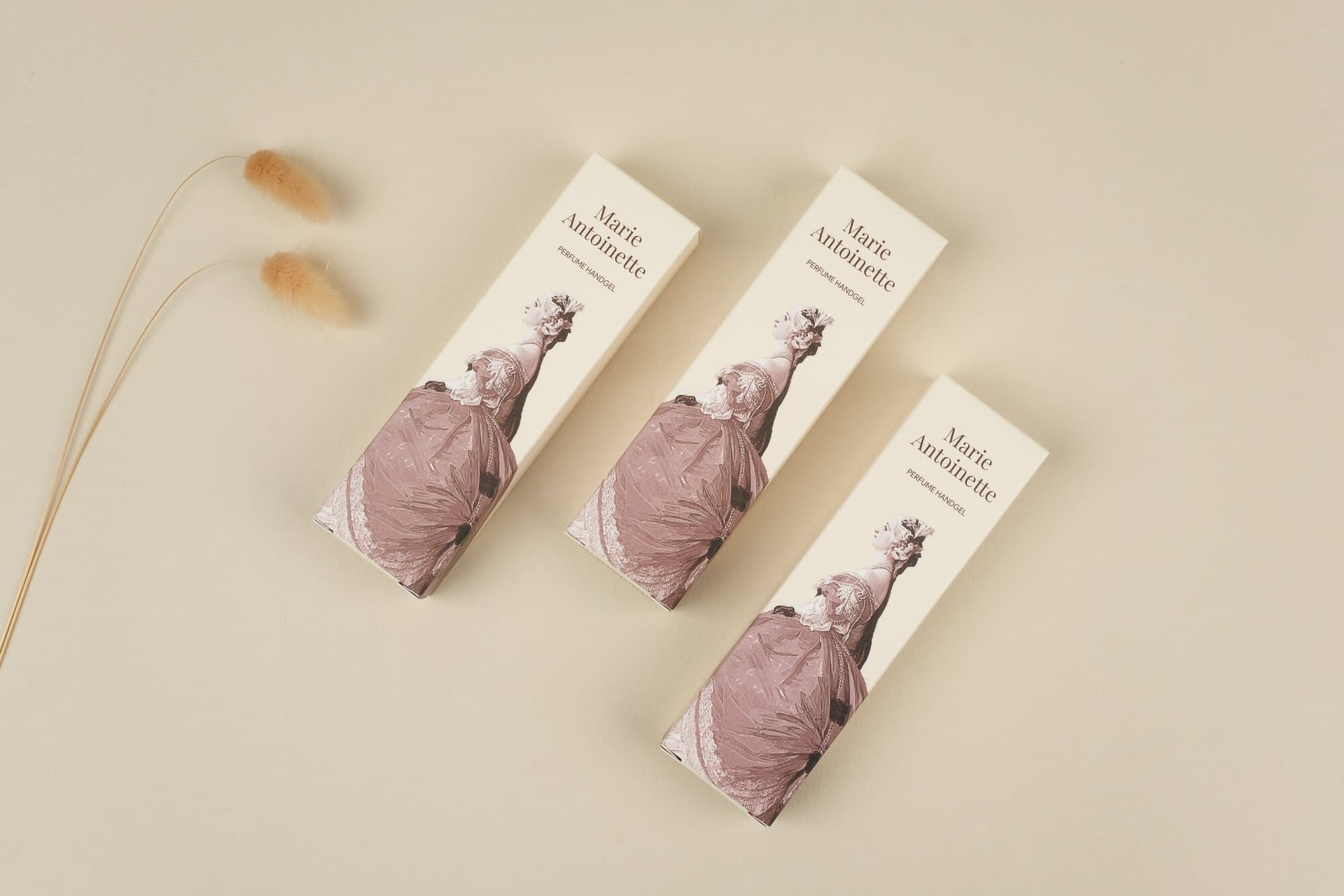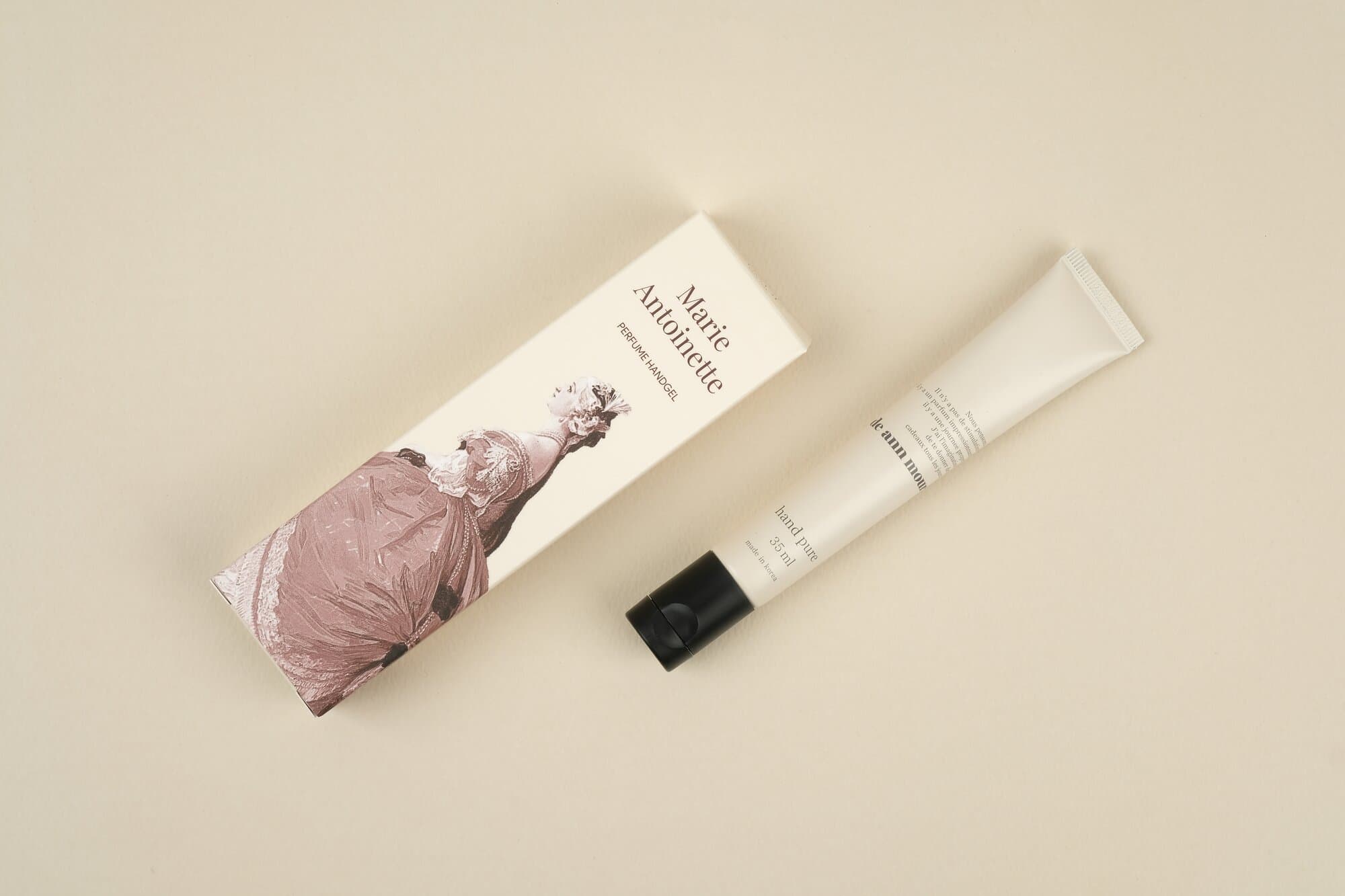 깊은 튜베로즈 향을 담은 핸드겔 패키지. 고급스러운 느낌을 위해 고민을 거듭한 끝에 나온 패키지입니다.