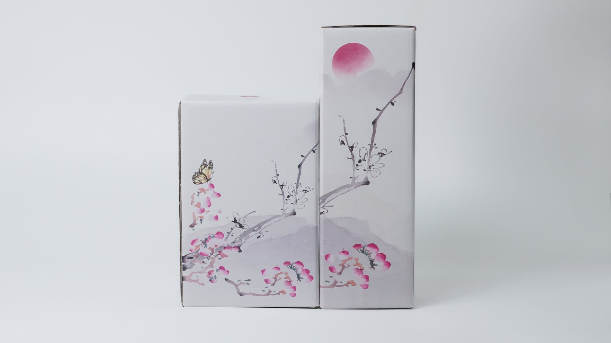 패키지를 맞닿게 놓고 보면 동양의 미를 가득 담은 홍매화 나무가 완성됩니다.