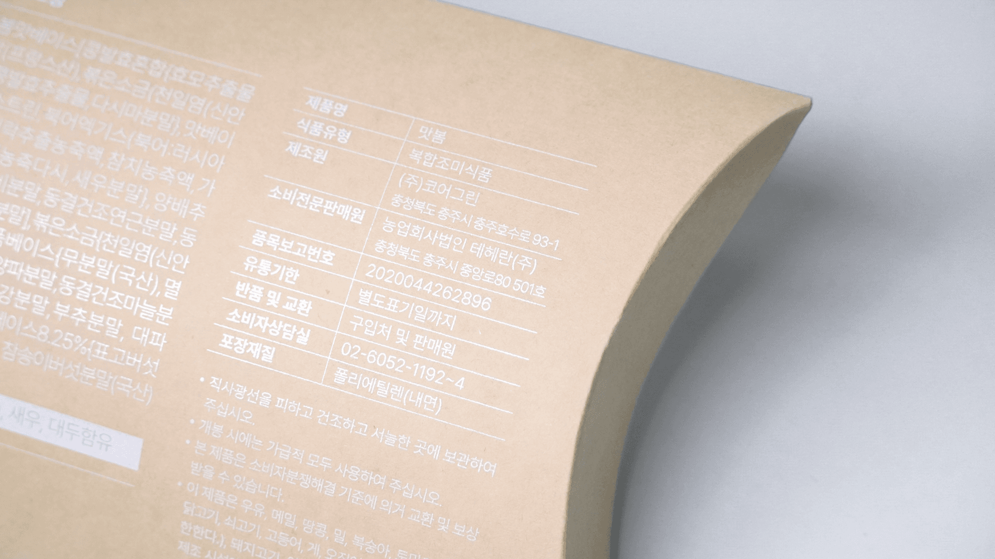 스마트팜 BUTTON에서 재배된 버섯으로 만들어진 천연 조미료 '맛봄'. 네이처팩러프B 지류를 활용해 컬러감을 배제하고 종이 질감 그대로의 느낌을 살려 천연 조미료의 매력을 살리는 패키지가 탄생되었습니다.