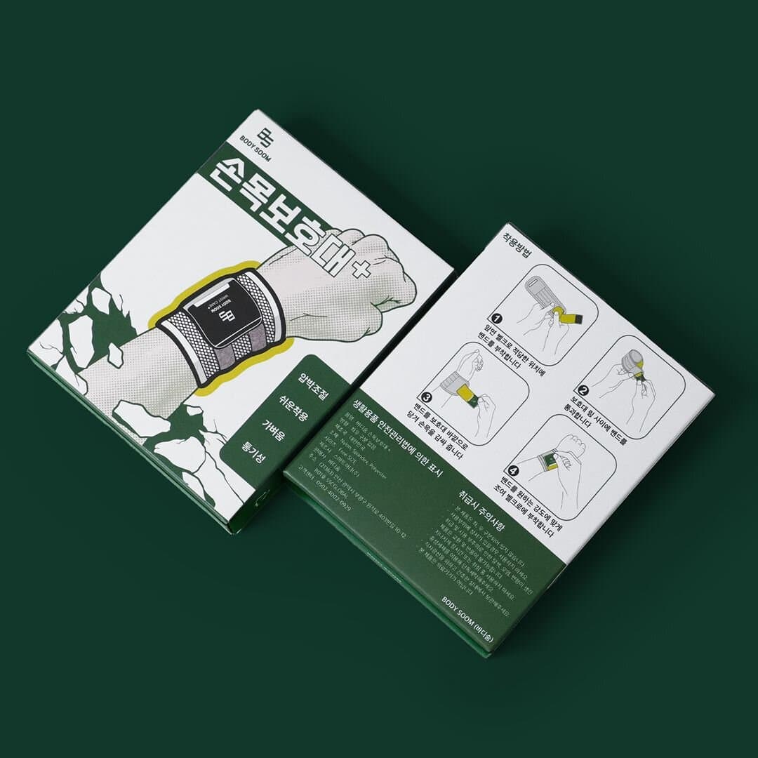 바디숨의 손목 보호대 패키지를 패커티브에서 제작했습니다. 단상자 중에서도 맞뚜껑형으로 제작되어 위 아래 뚜껑을 간단히 조립해 사용 가능한 것이 특징인데요. 패키지만 보아도 상품의 특징이나 사용법과 같은 정보를 한 눈에 쉽게 알 수 있어 사용 설명서가 따로 필요없는 디자인입니다.