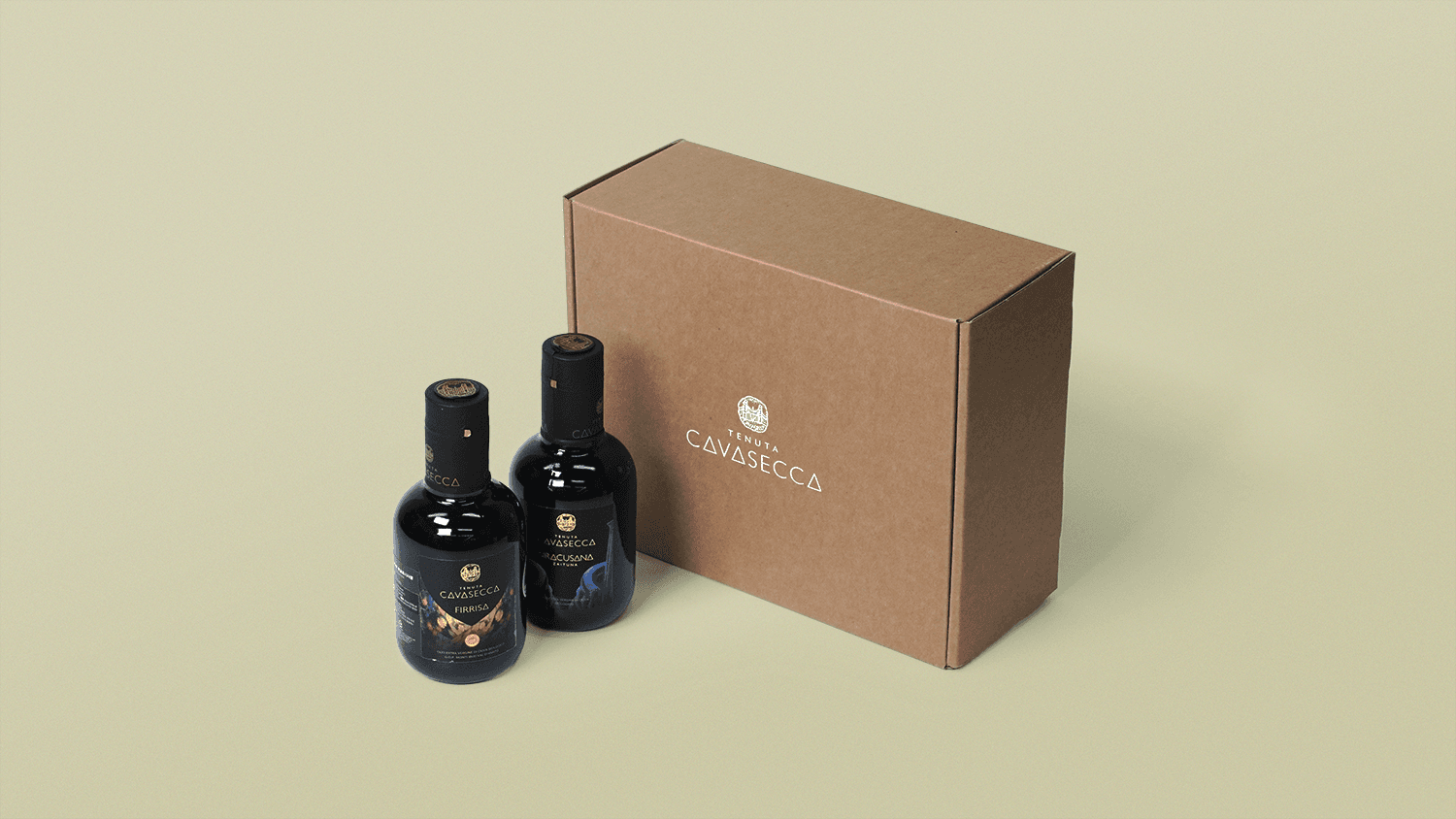 이탈리아에서 온 프리미엄 올리브오일 카바세카의 공식 수입원 사과유통에서 2병 이상 주문 시 고급스러운 크라프트 박스에 포장되어 배송됩니다. 합지를 진행하지 않고 골판지 그대로의 질감을 활용해 심플하게 로고 인쇄만으로 완성되었습니다. 골판지 박스에 인쇄를 할 때는 일반 인쇄가 아닌 실크 인쇄로 진행해야 보다 선명하고 고급스러운 인쇄가 가능합니다.