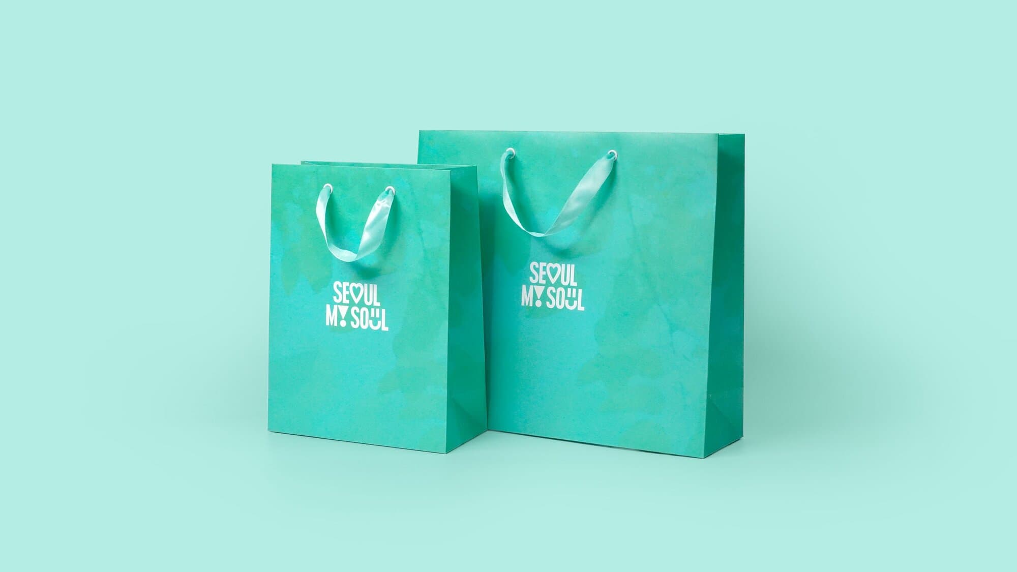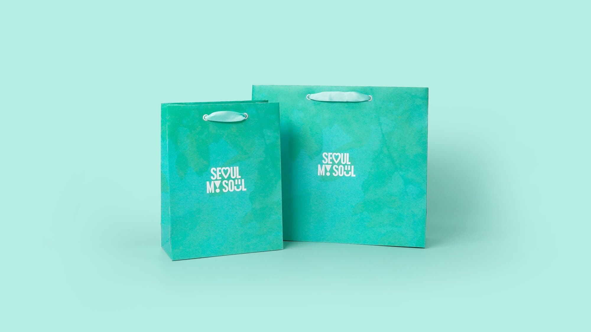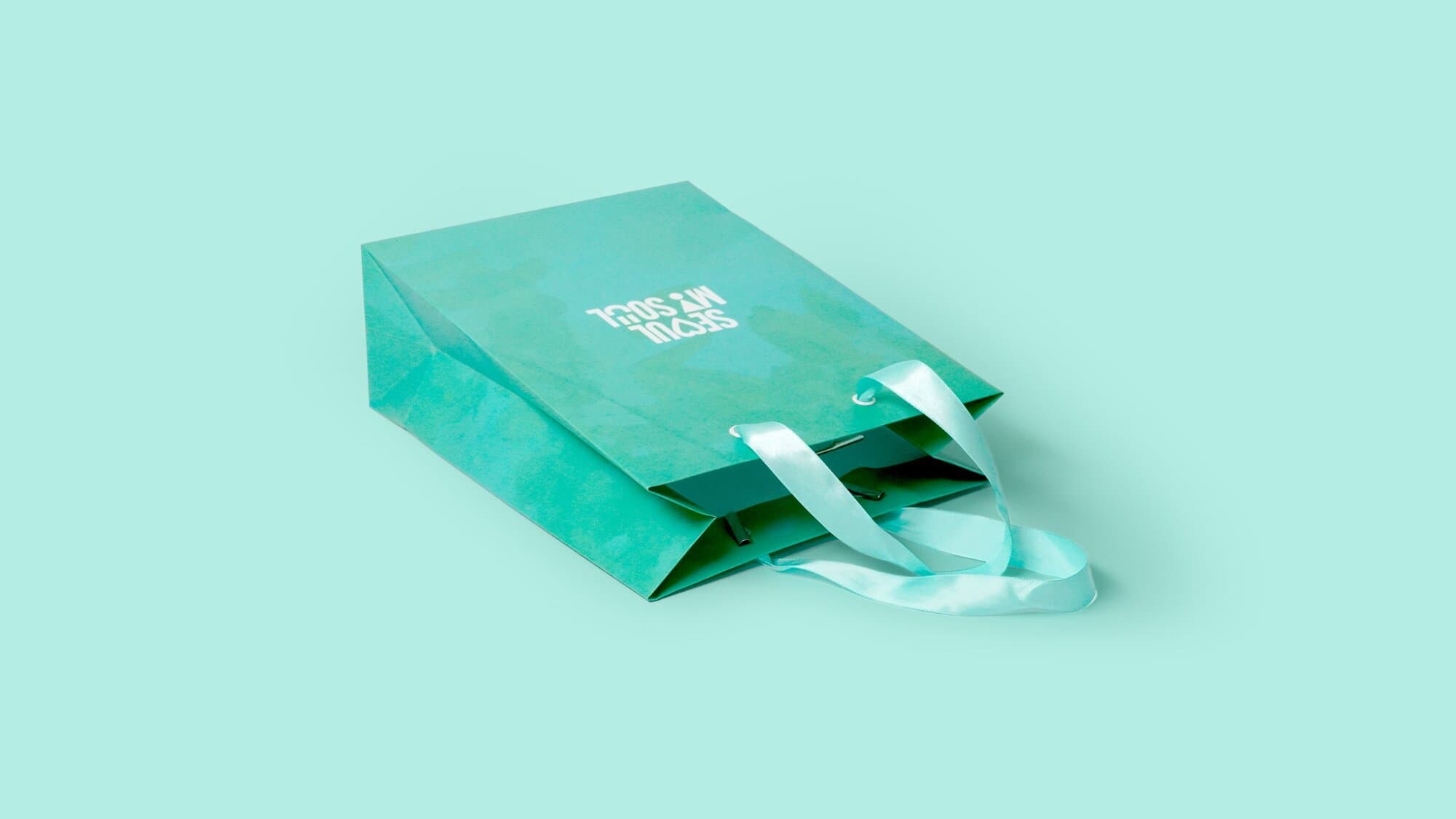 2024 스카이코랄에 이어 2025 서울색 그린오로라가 떠오르는 서울시의 쇼핑백은 소, 대 2가지 사이즈로 제작되었습니다. 공단 리본과 철팁 마감까지 깔끔하게 마무리 된 모습입니다.