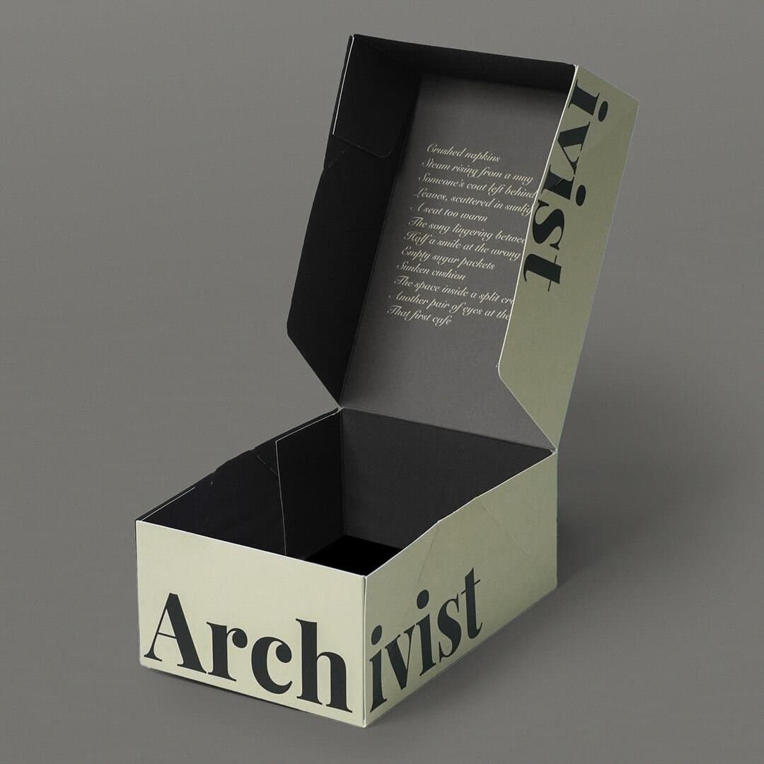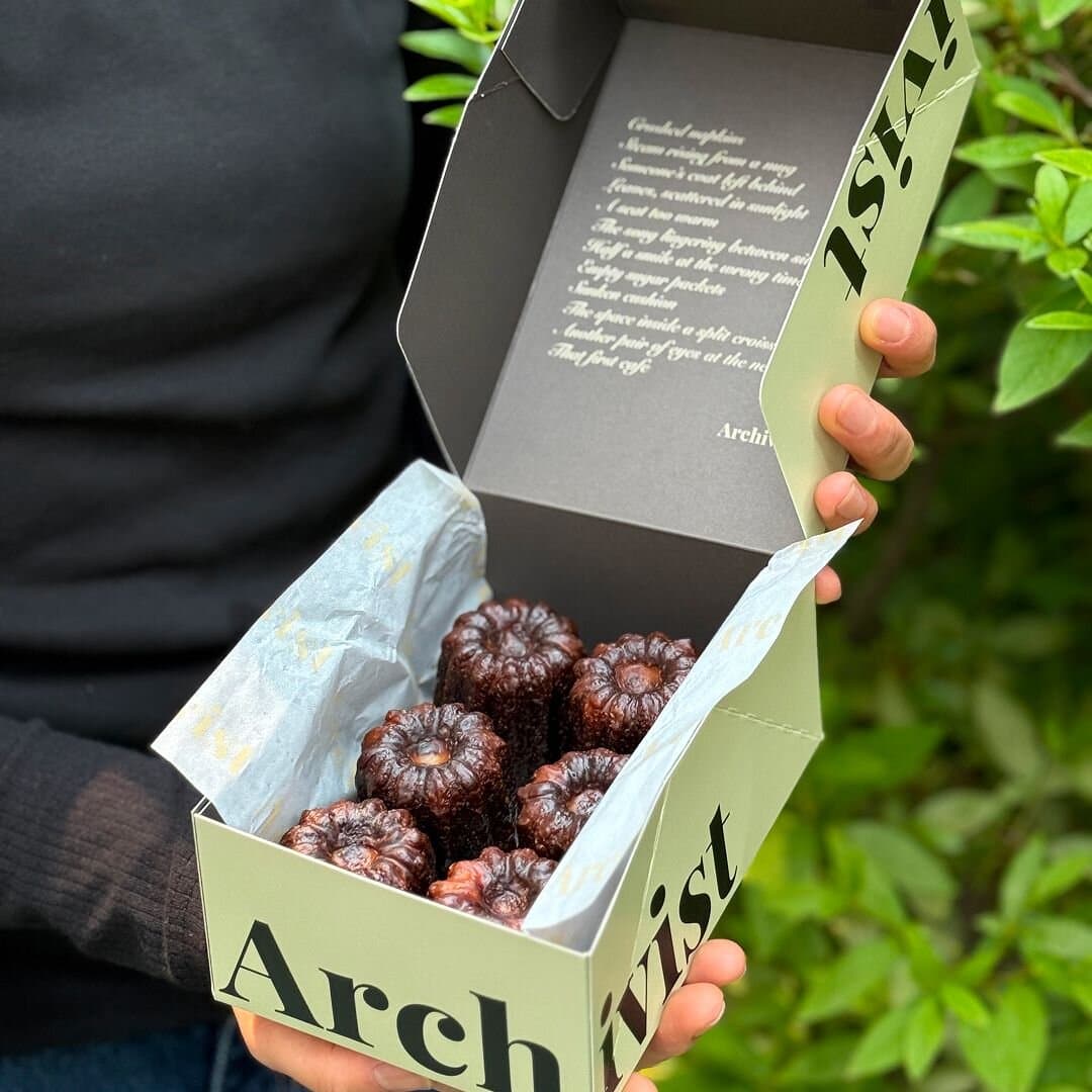 서울 3대 아인슈페너 맛집으로 알려진 카페 아키비스트의 구움과자 선물용 도넛박스. 영문 로고와 브랜드 메시지를 효과적으로 배치해 고객들이 제품을 받아보는 순간부터 브랜드 가치와 철학을 자연스럽게 느낄 수 있도록 제작되었습니다.