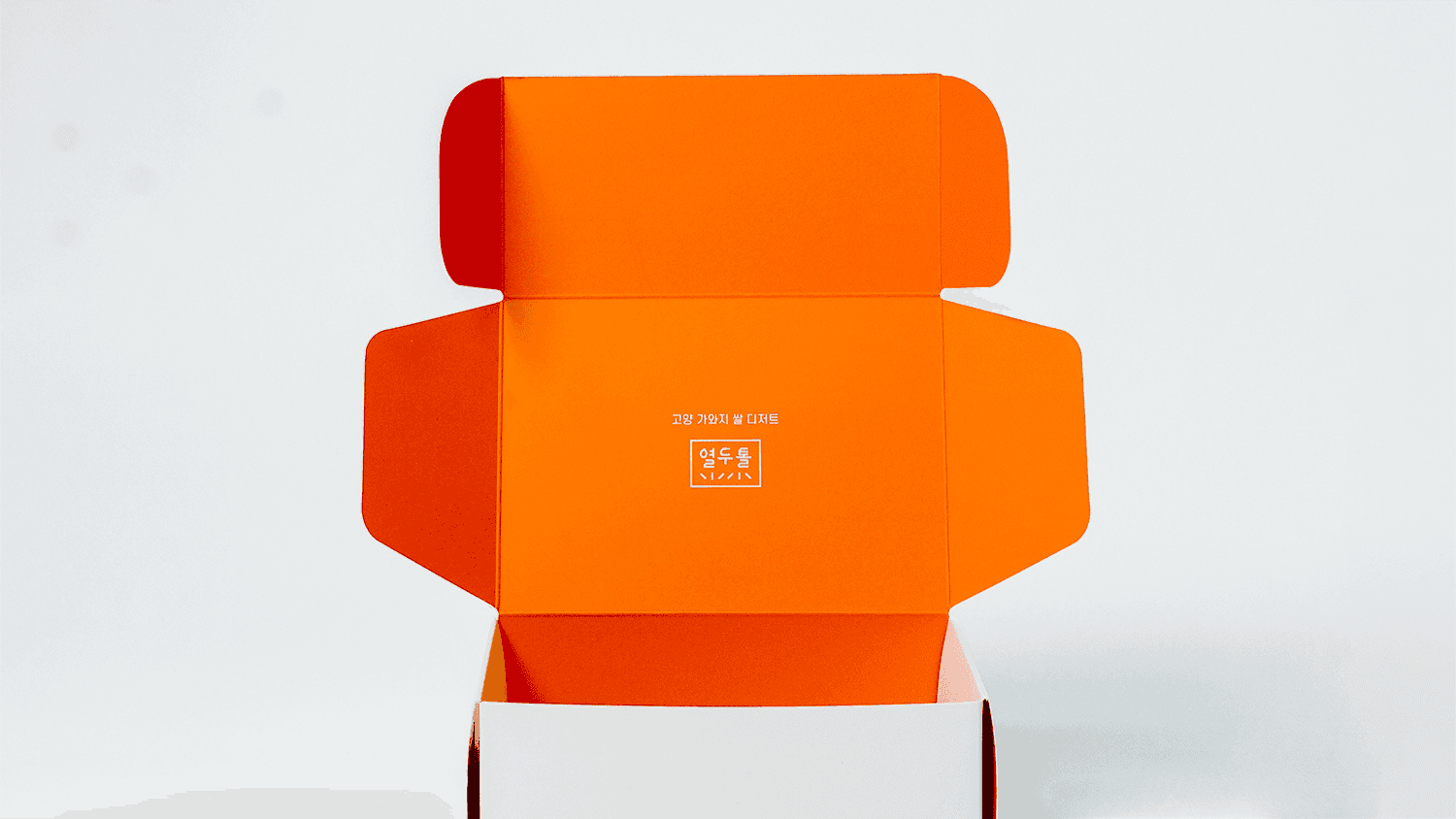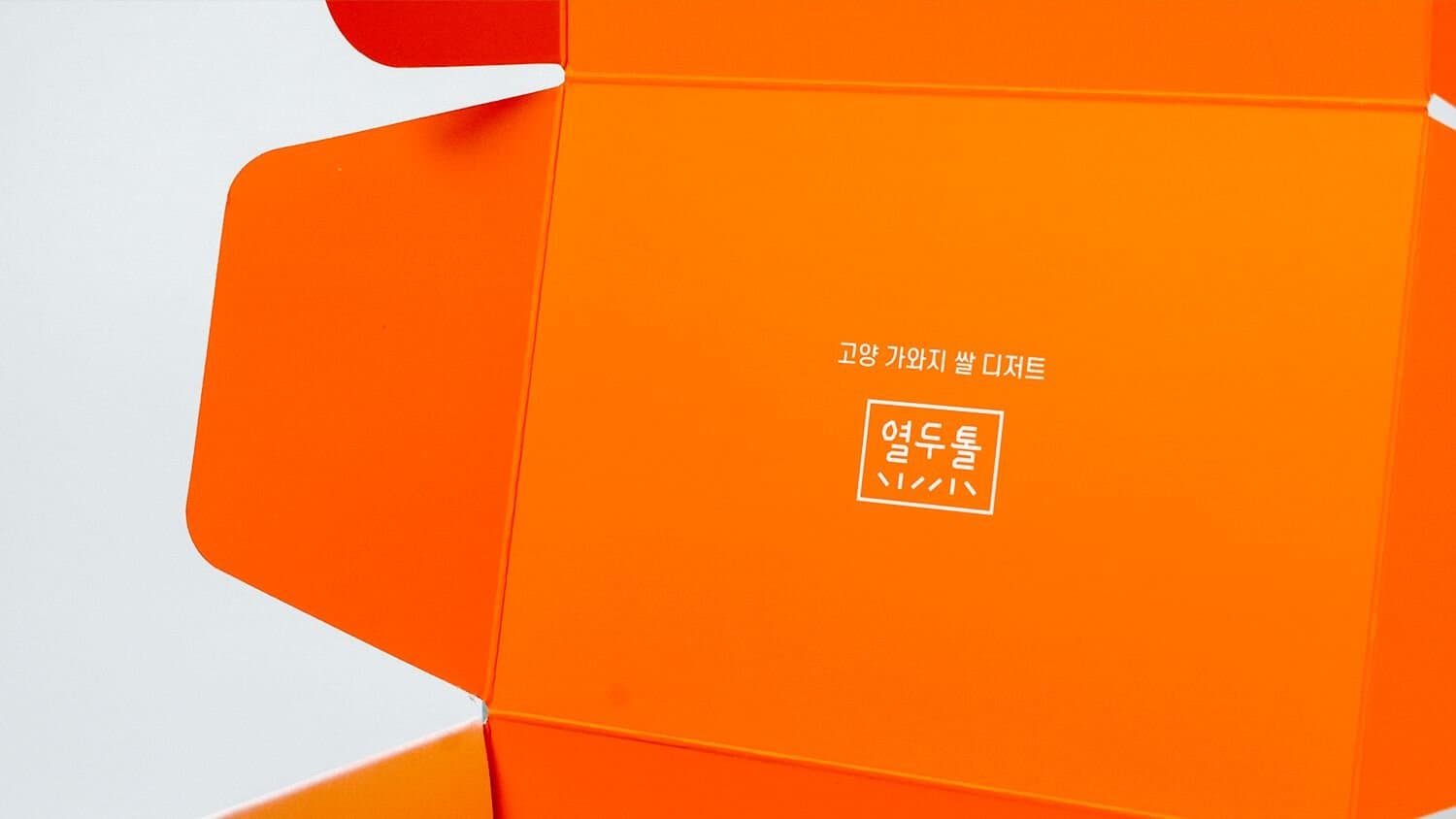 카페 열두톨의 쌀 파운드케이크 포장용 디저트 패키지입니다. 순백의 상자 뚜껑을 열었을 때 오렌지의 강렬함과 즐거움을 선사하고자 디저트 패키지의 외부는 백색, 내부는 별색으로 쨍한 오렌지의 강렬함을 구현하였습니다. 특히, 상자 겉면에 굴러가는 쌀알 12알에 에폭시 후가공을 더해 쌀 디저트임을 인식할 수 있도록 브랜드의 상징성을 더했습니다.
