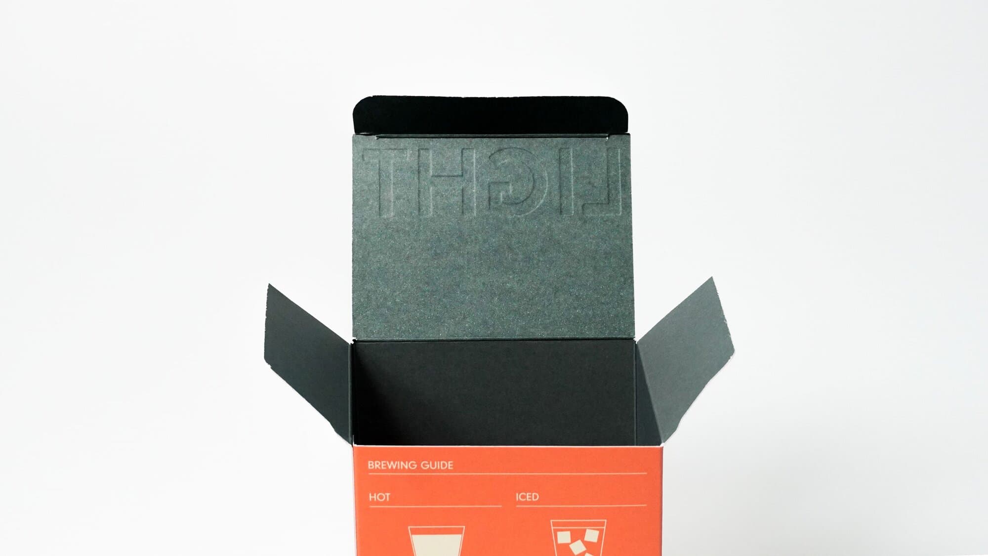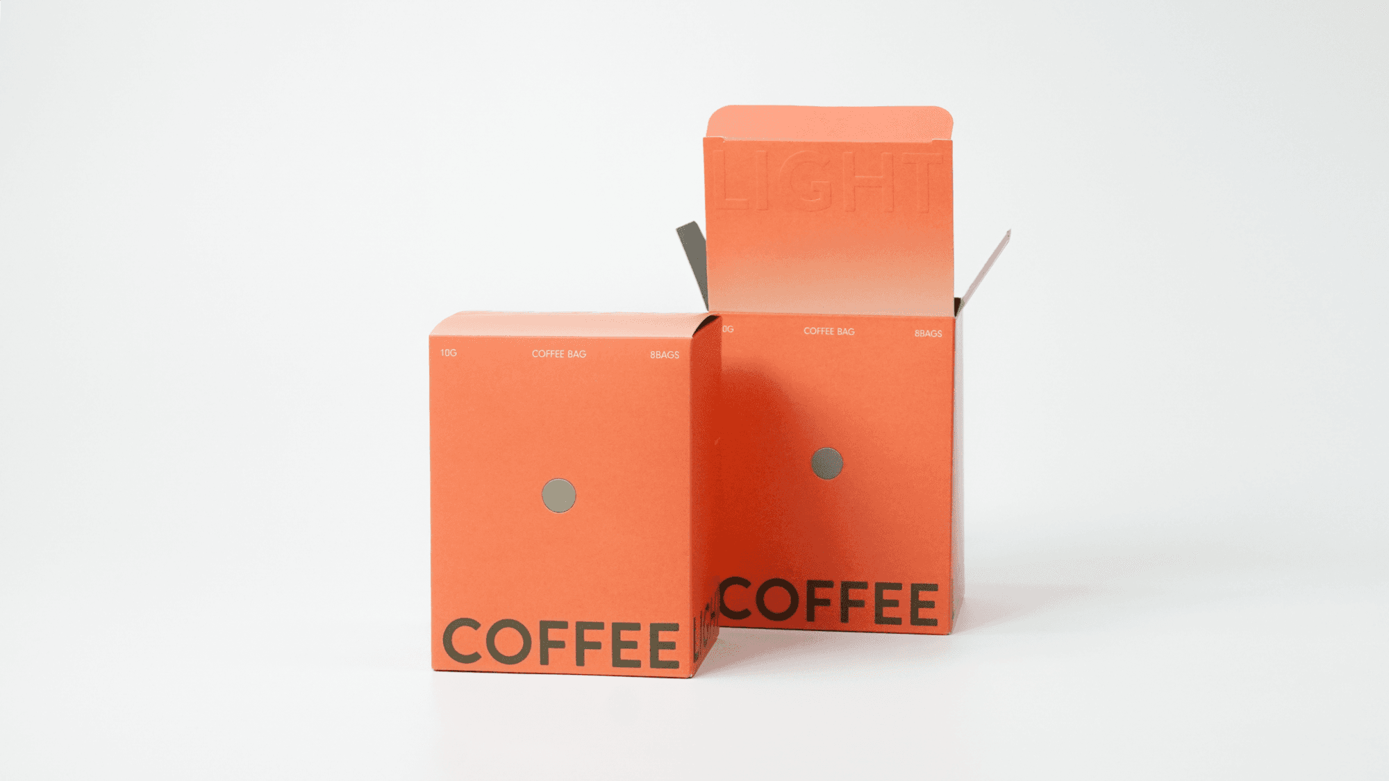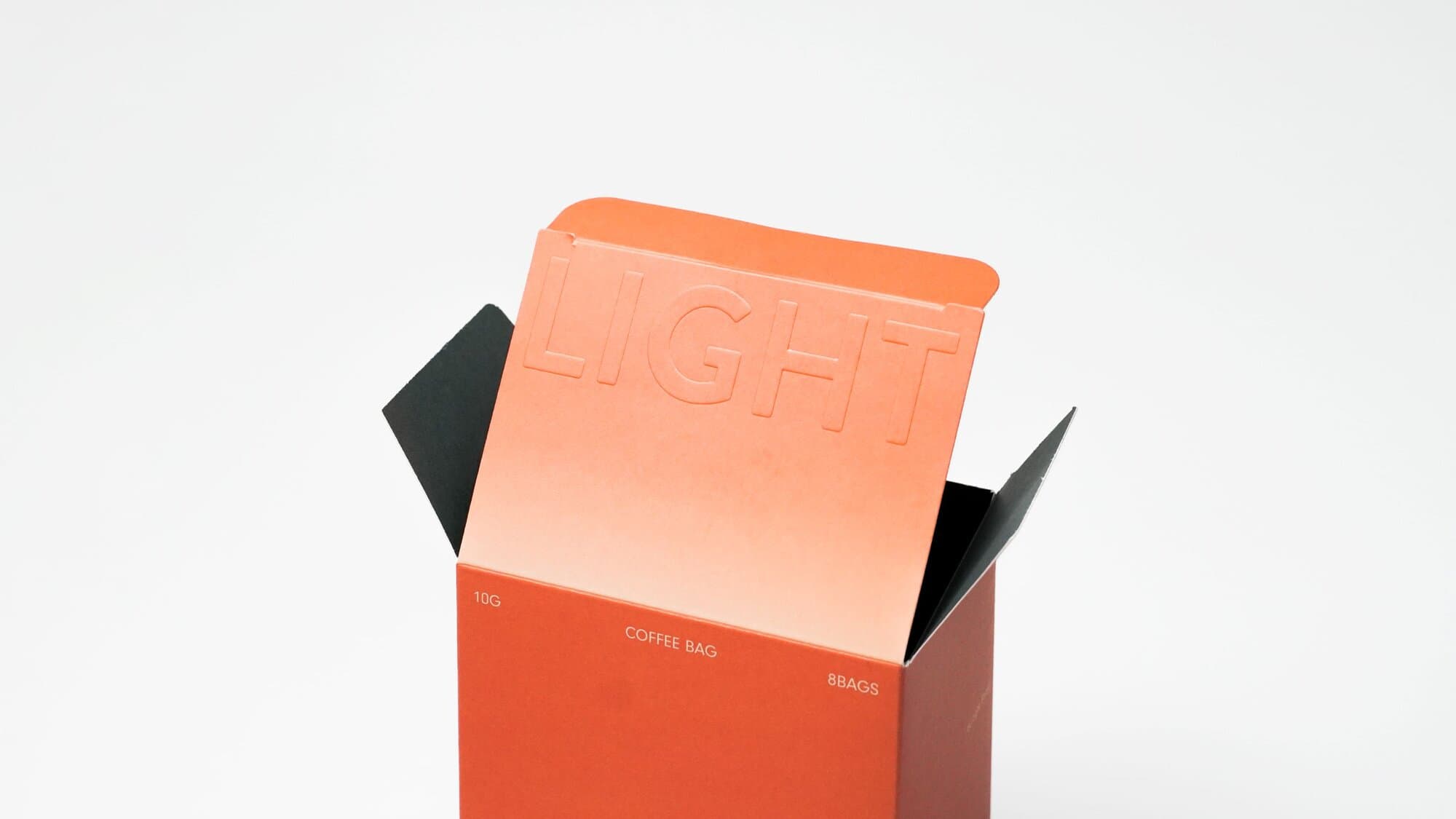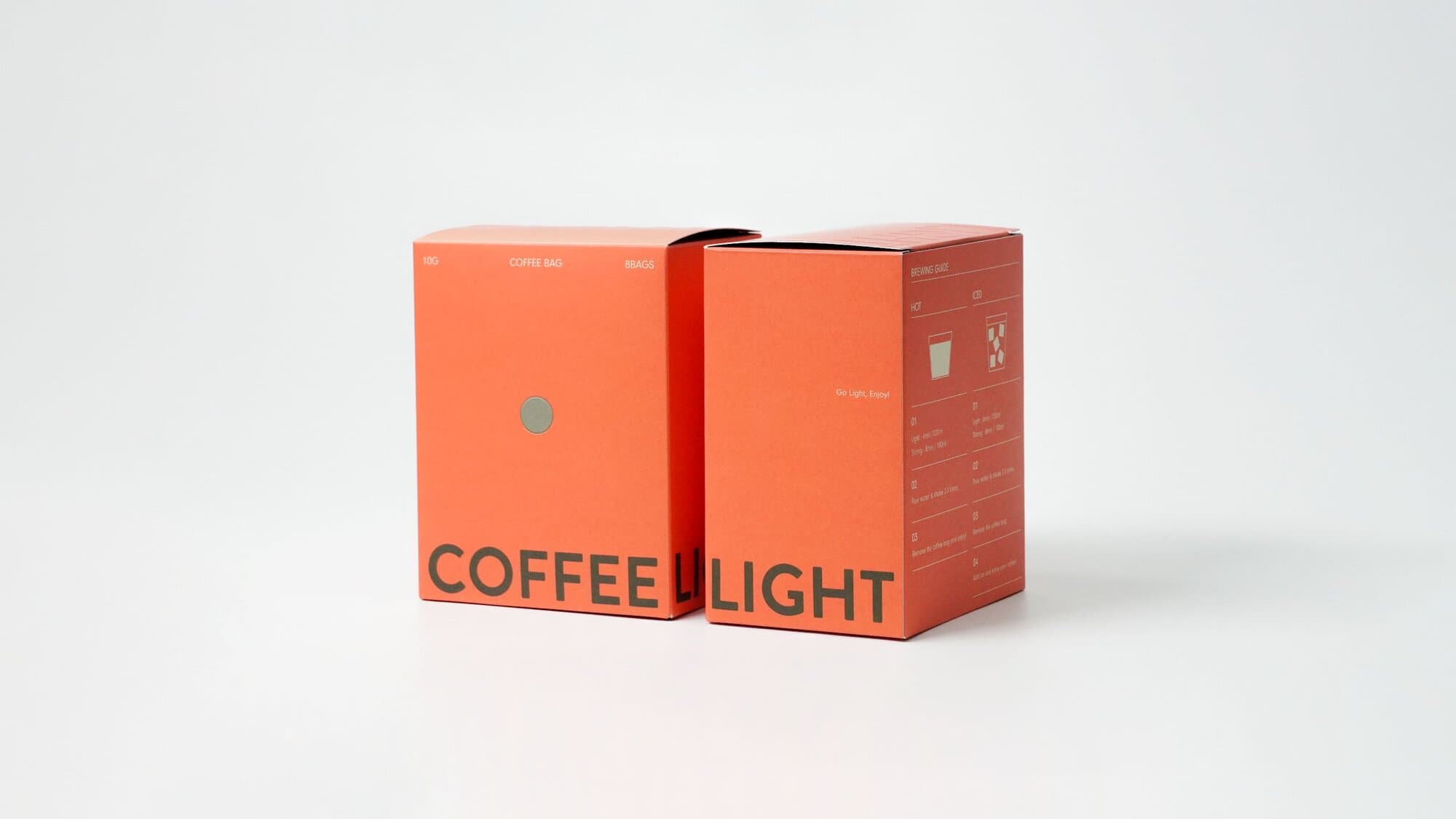 제주의 로스터리 카페 커피라이트의 드립백 패키지입니다. 패키지의 정면과 측면을 맞닿아보면 'COFFEELIGHT'가 완성됩니다. 친환경 비코팅 지류를 활용한 양면 색감 조화가 멋진데요. 뚜껑에 새겨진 글씨에 형압을 주어 포인트를 더했습니다.