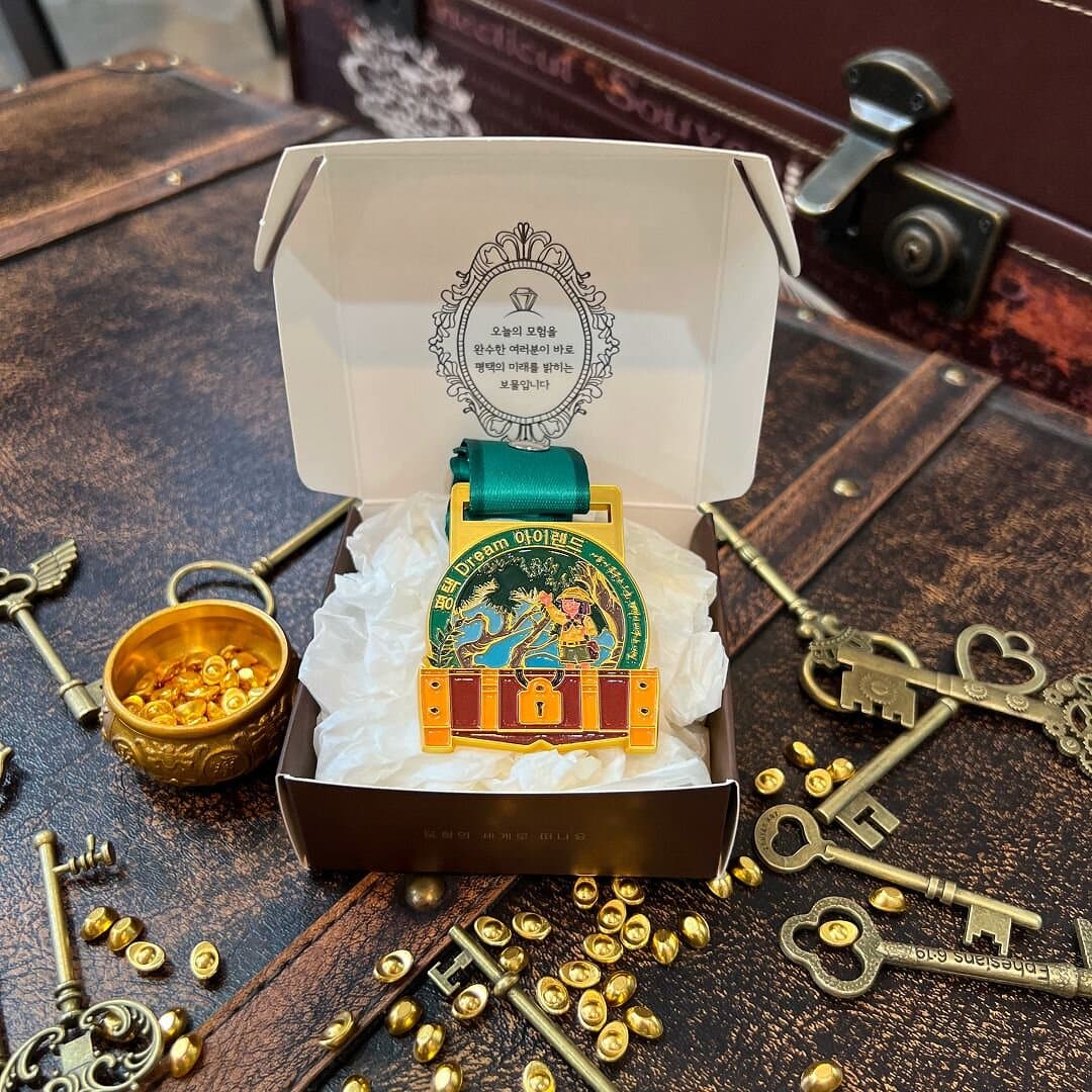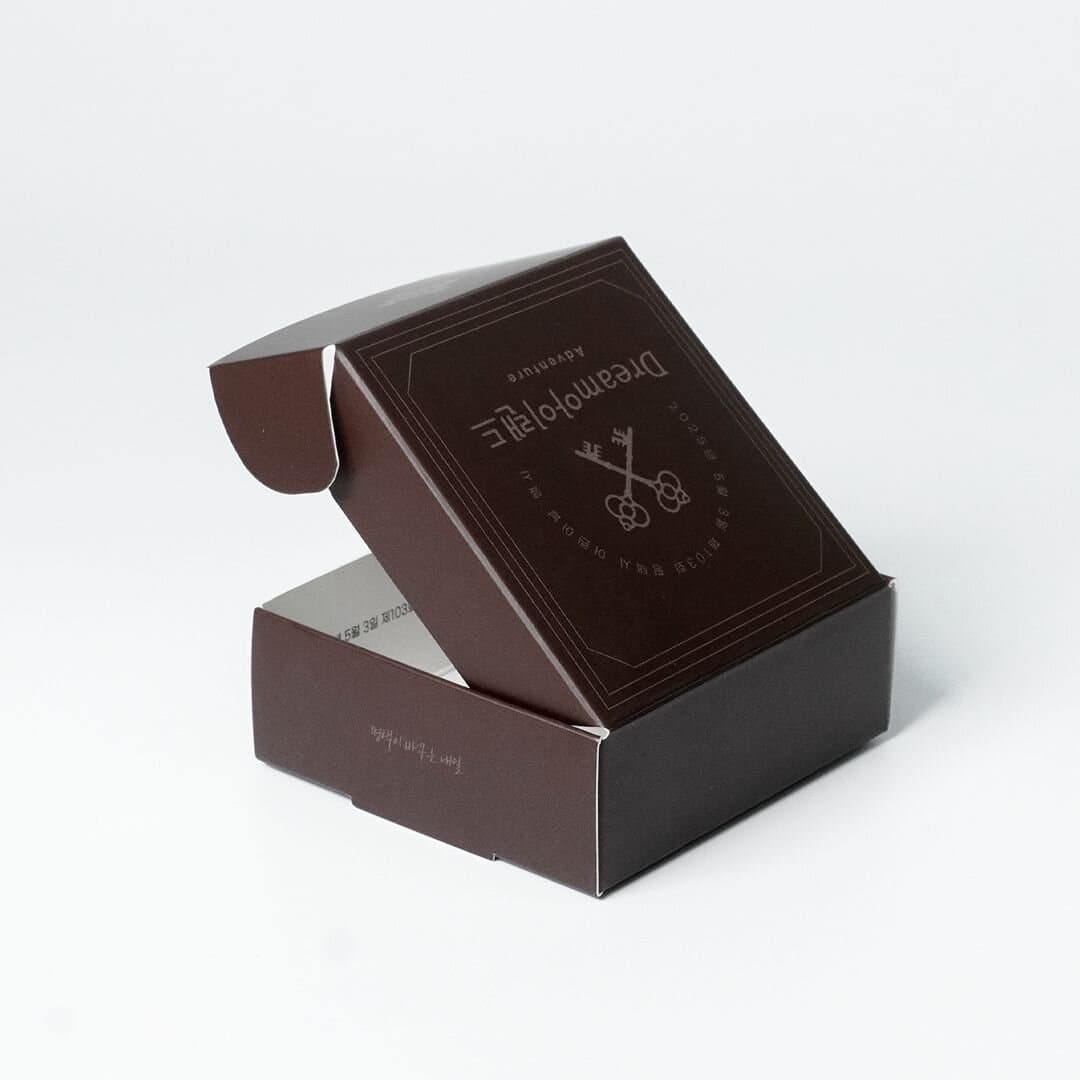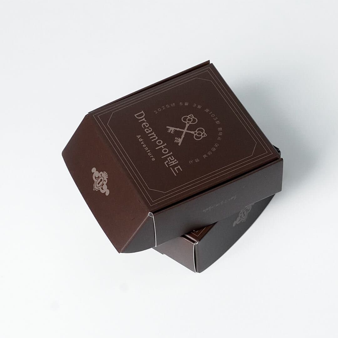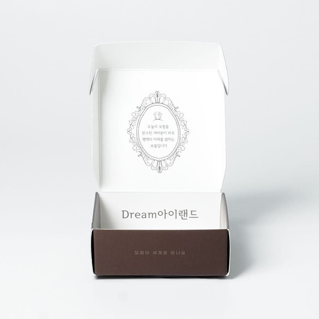 제 103회 평택시 어린이날 행사 '평택드림아이랜드'의 스탬프 투어에 사용된 행사용 패키지입니다. 리워드로 제공 된 한 손에 들어오는 작은 크기의 메달 박스는 조립형으로, 접착 공정이 따로 필요하지 않아 빠르게 제작이 가능합니다. 내부에는 스탬프 투어를 완료한 어린이들을 위한 문구를 먹 1도로 인쇄했습니다.
