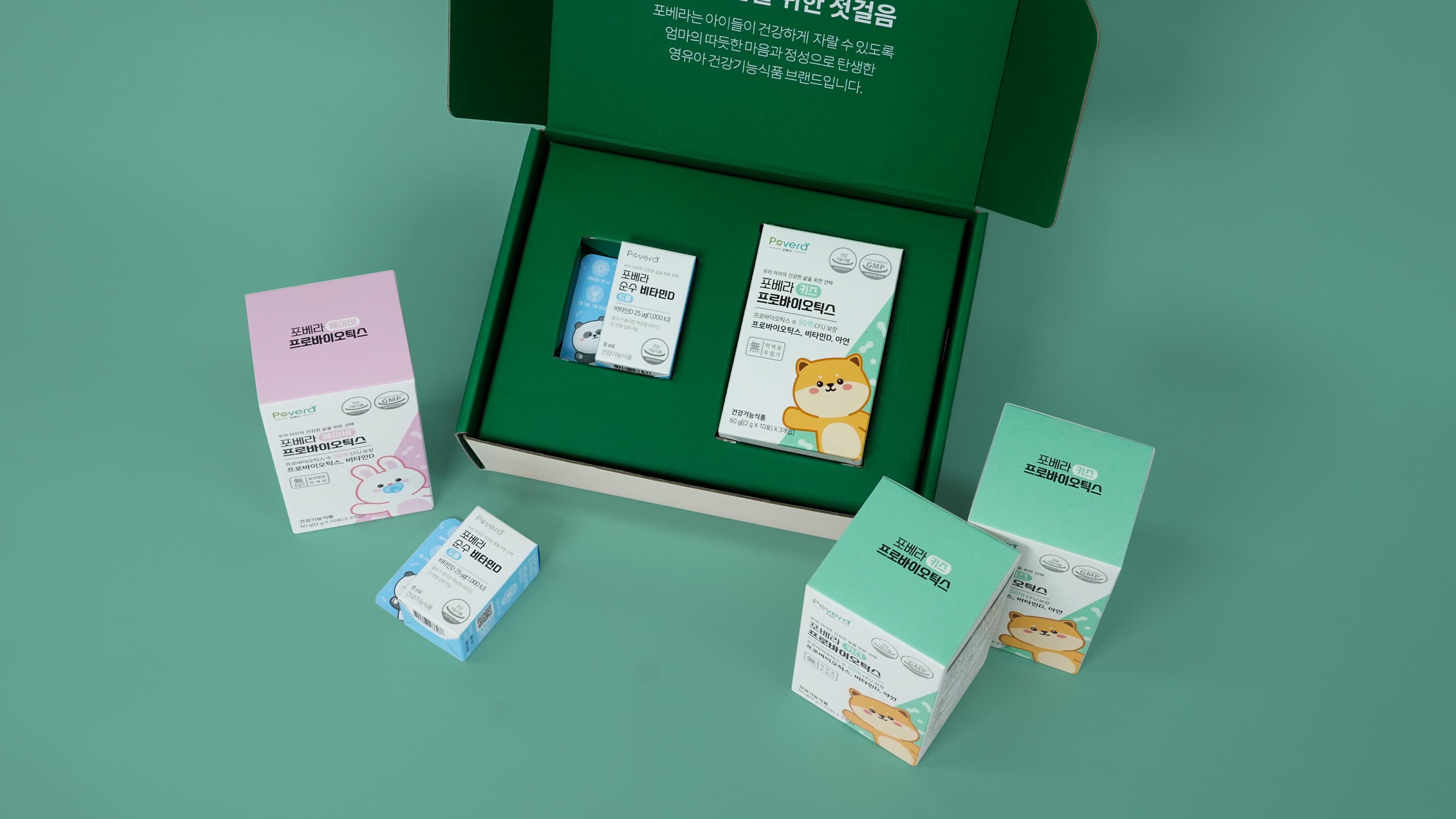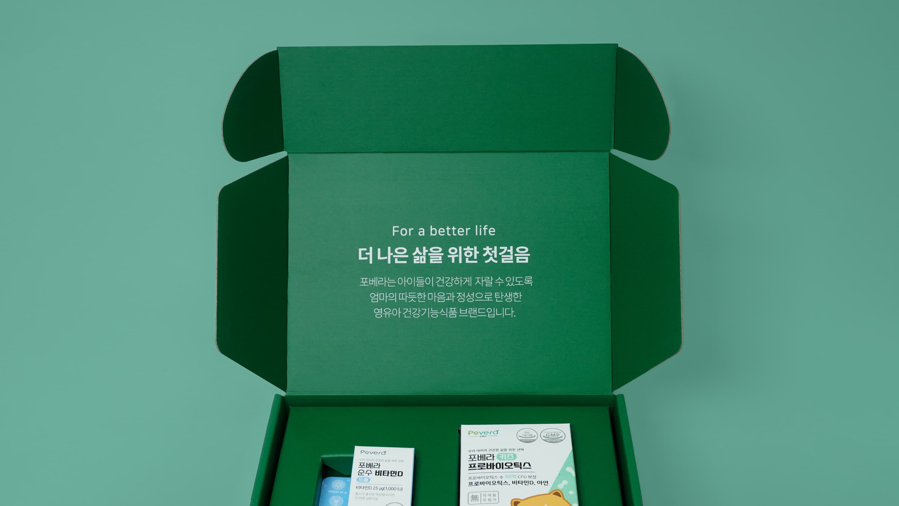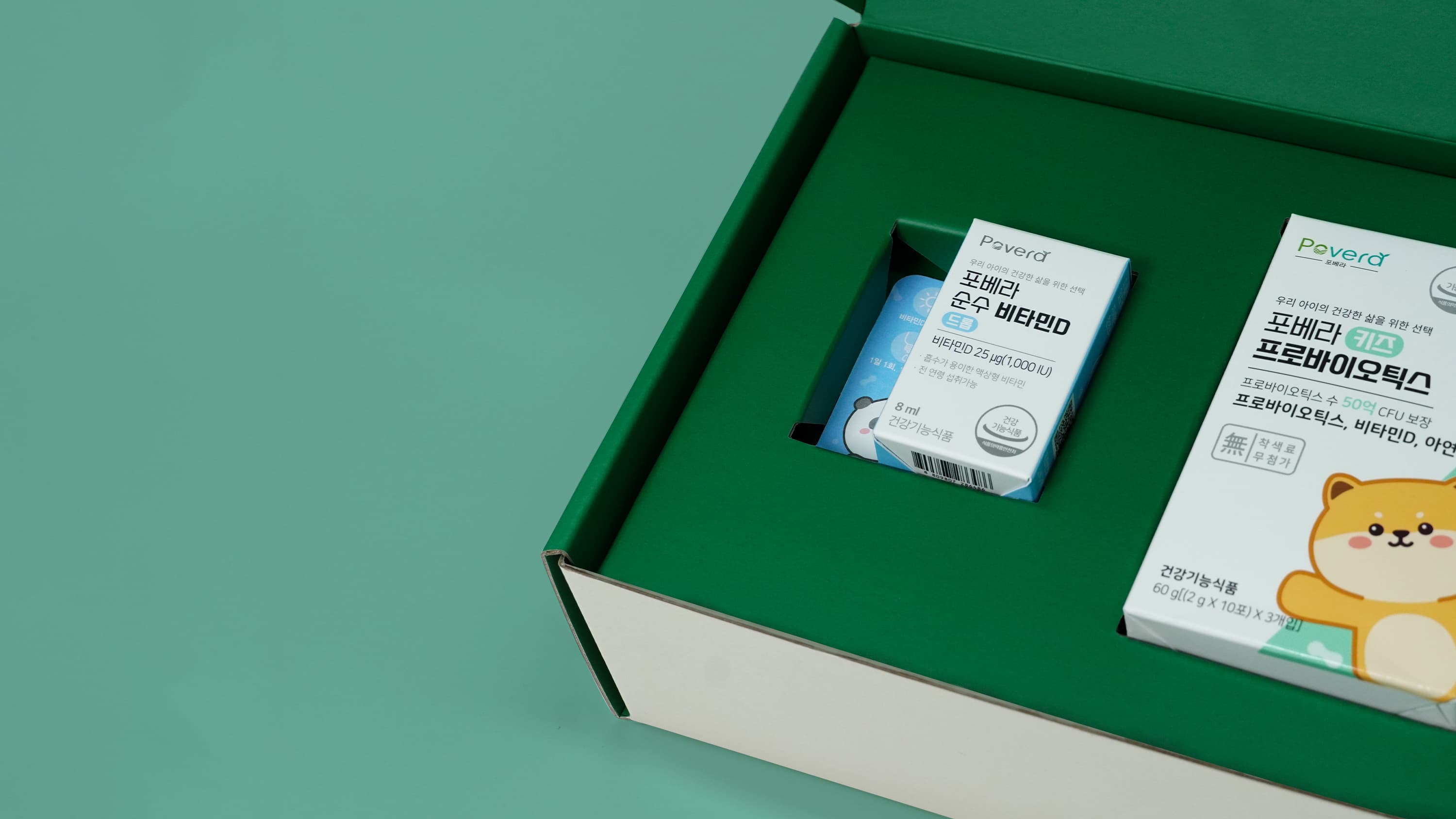 포베라의 프로바이오틱스 패키지는 건강기능식품에 어울리는 깔끔한 인상을 담은 G형 골판지 포장박스로 제작되었습니다. 백K-K E골에 SC240g 합지를 적용하고 양면 4도 인쇄와 무광코팅으로 완성도를 높여, 제품 보호는 물론 브랜드 신뢰감을 함께 전달할 수 있는 헬스케어 패키지입니다.