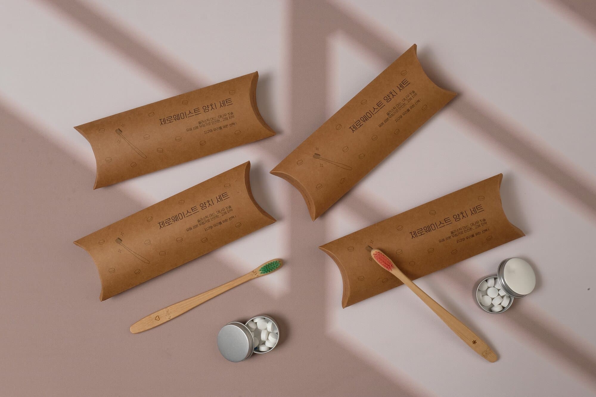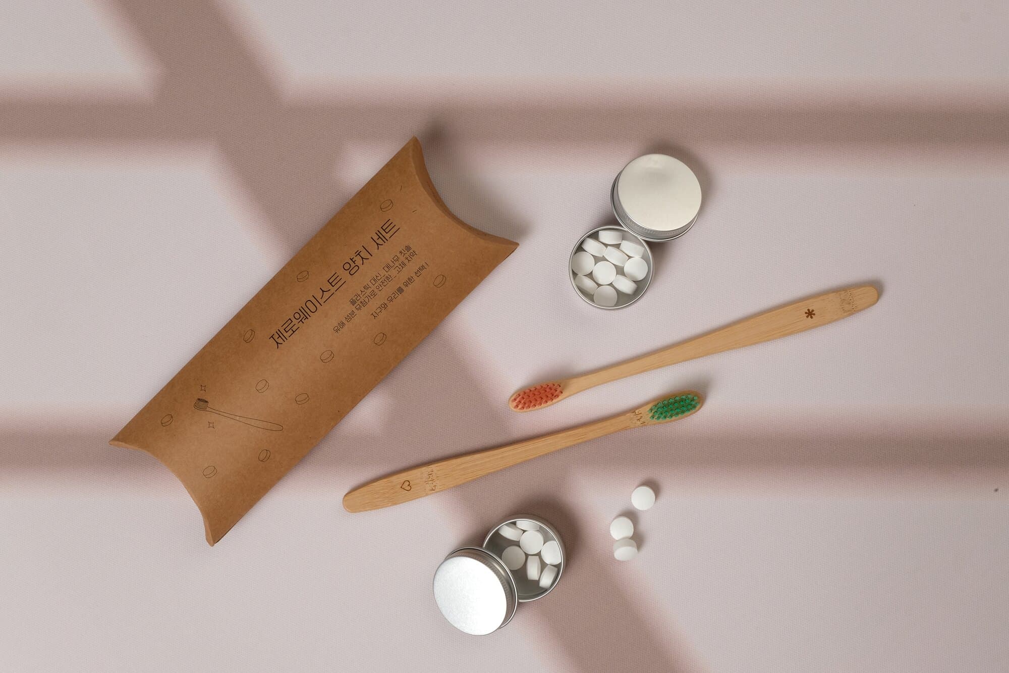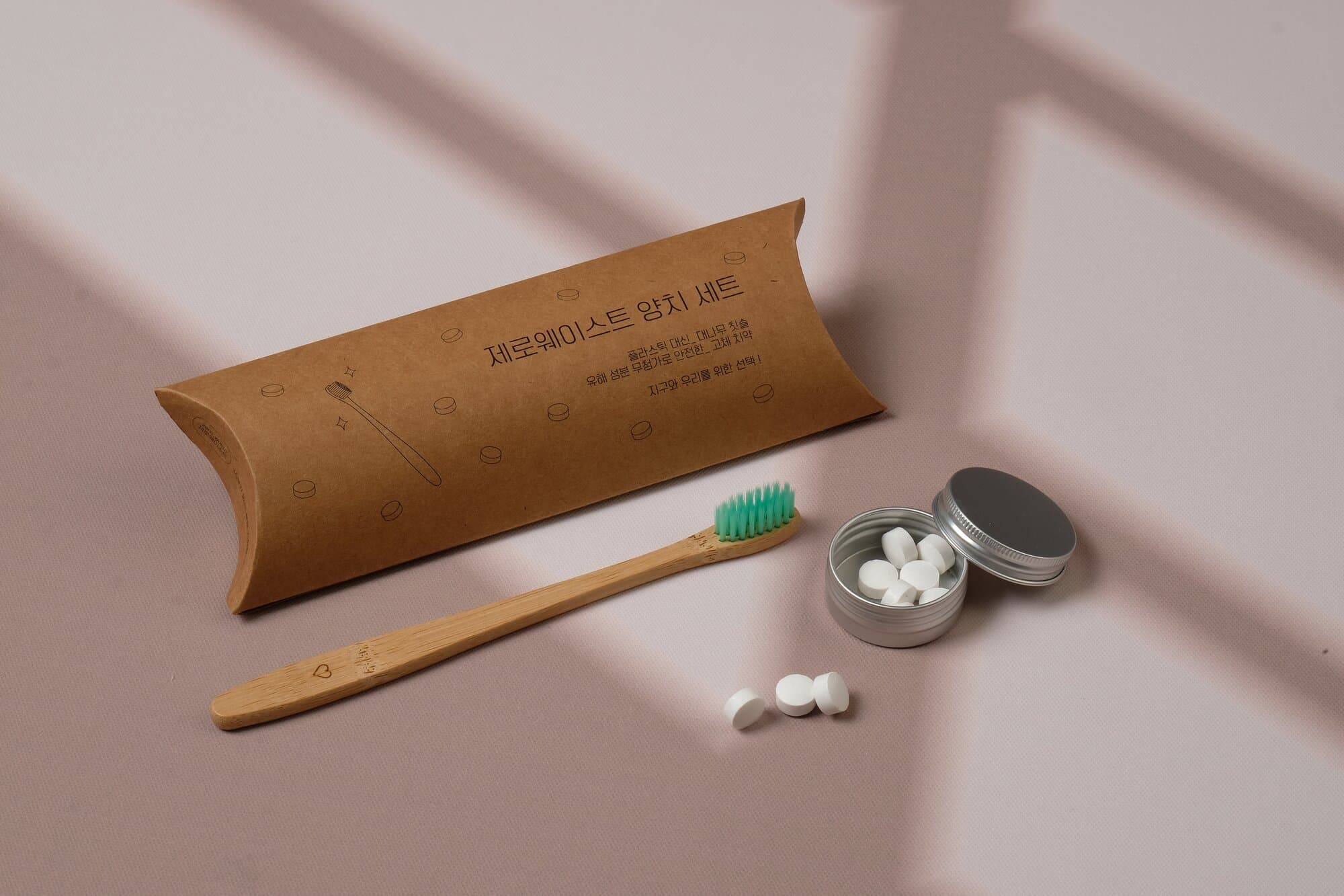 대나무 칫솔과 고체치약 패키지