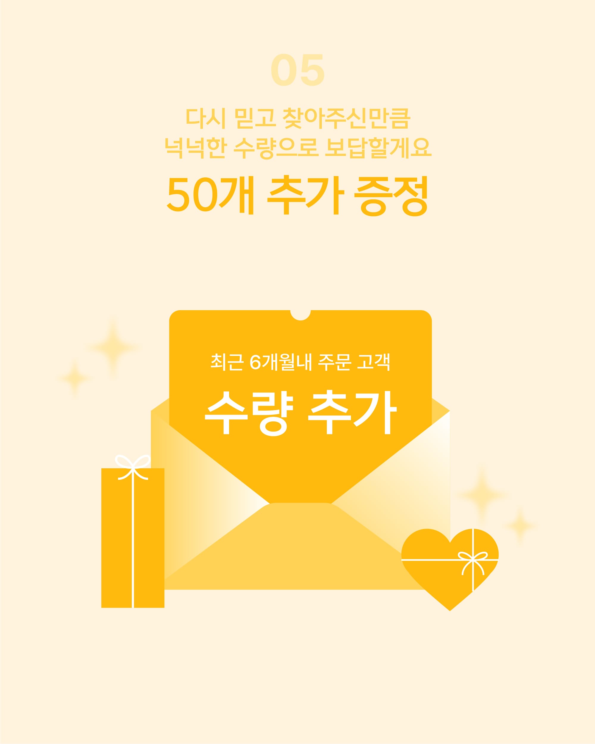 더불어, 최근 6개월 이내에 패커티브에서 주문한 이력이 있으시다면, 페스타 기간동안 재주문 시 50개 추가 증정 혜택도 함께 받아보실 수 있습니다. 재주문이 필요한 시점이라면 이번 기회를 활용해보세요!